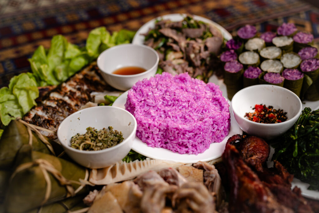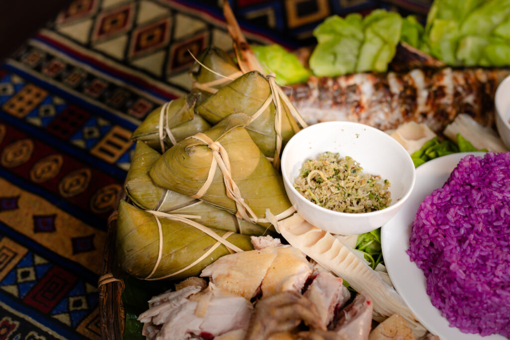 Các món ăn được chế biến từ sản vật địa phương: măng rừng tươi, thịt gà, heo bản quê và cá suối – mang hương vị chân chất vùng núi. Đặc sản vùng cao như xôi nếp nương, gà nướng ống tre sẽ khiến bạn nhớ mãi hương vị quê miền núi.